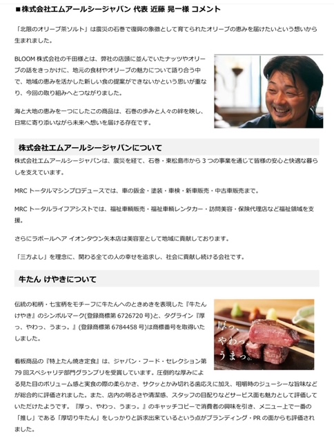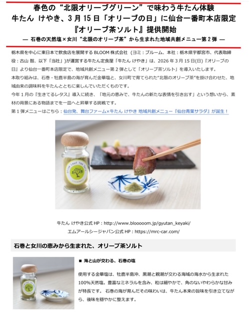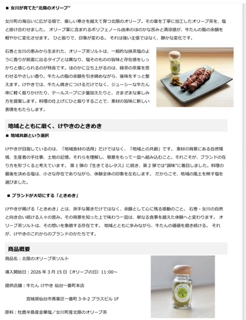 オリーブの日 石巻オリーブリーフ 牛たんけやき 石巻オリーブ オリーブ茶ソルト 仙台一番町本店 仙台 限定